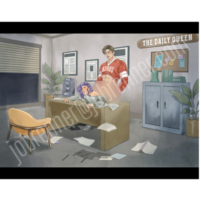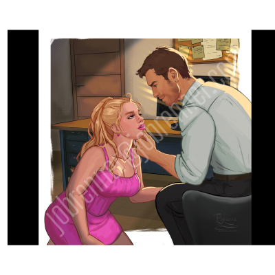 Butterfly NSFW art print of Leslie and Mason in library