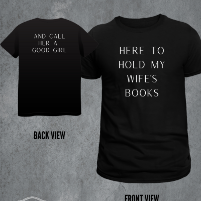 Here to Hold My Wife’s Books Tee Shirt
