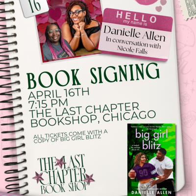 Come meet Danielle Allen at The Last Chapter Book Shop for a book signing event celebrating her latest release, Big Girl Blitz! Stop by to meet the author, get your book signed, and connect with fellow romance readers.